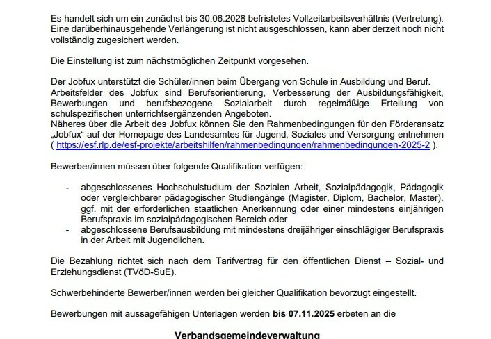 Werden Sie Jobfux an der RS plus Hoher Westerwald! In unserem erfolgreichen Team begleiten Sie Jugendliche auf ihrem Weg in Ausbildung und Beruf. Interesse? ...