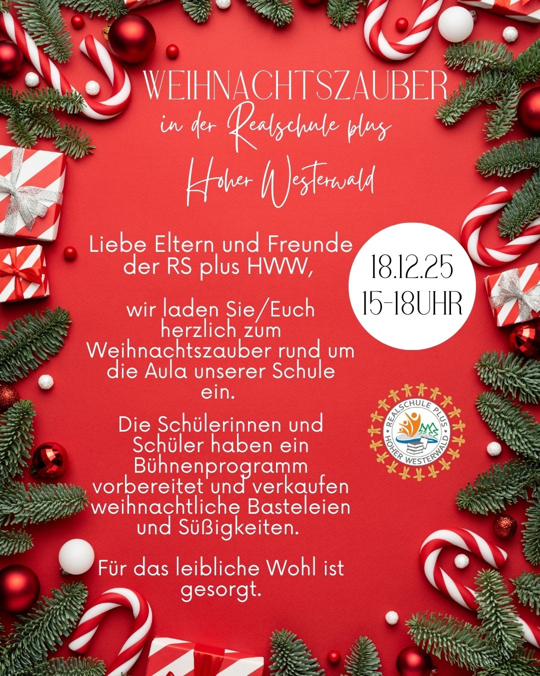 In der letzten Schulwoche des Jahres finden drei Projekttage (Montag – Mittwoch) statt. Es wird gebastelt, gebacken, gewerkelt und geprobt. Der Ganztagsunterricht fällt für alle aus. Am Donnerstag, den 18. Dezember laden wir zum großen Weihnachtsmarkt von 15.00 Uhr – 18.00 Uhr mit Programm, Essen und Trinken und jeder Menge weihnachtlichen Verkaufsständen ein. Wir freuen uns auf Ihr Kommen.
