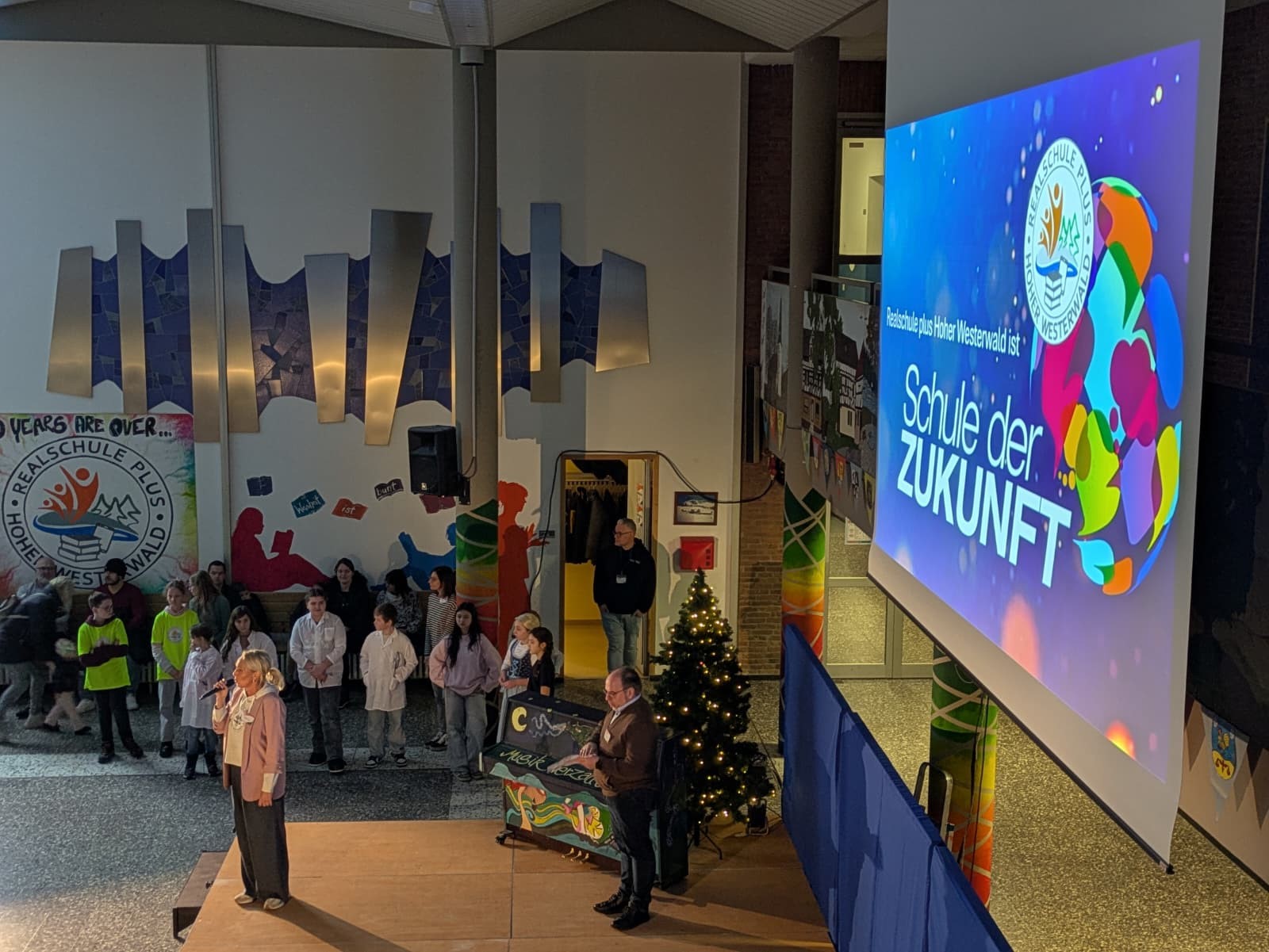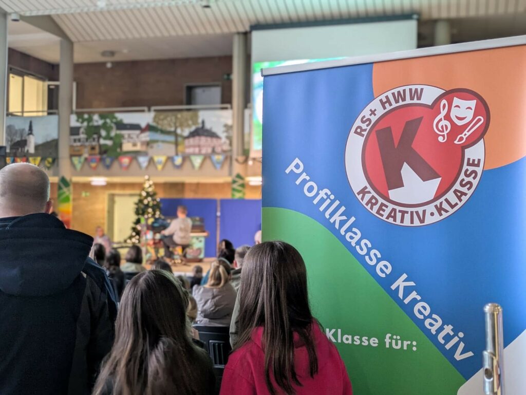 In einer großen zentralen Informationsveranstaltung für die Eltern präsentierte die Schulleitung vor allem das Profilfachangebot der Realschule plus Hoher Westerwald, die gerade in die Landesinitiative „Schule der Zukunft“ aufgenommen wurde. Hier kamen die Profilklassen selbst zu Wort, denn in einer kleinen Talkshow berichteten sie von ihrer Profilklasse und dem tollen Angebot, dort in zwei Stunden pro Woche ohne Notendruck im Team gemeinsam zu lernen, zu experimentieren oder tolle Dinge einzustudieren. Auch Ausflüge gehören zum Programm der vier Profilangebote. Während die Eltern in der Aula informiert wurden, konnten die zukünftigen Schülerinnen und Schüler mit den Schülerscouts das Gebäude und die Fachräume erkunden und natürlich eine Waffel oder ein kaltes oder warmes Getränk am Stand des Schulelternbeirates und Fördervereins erwerben.