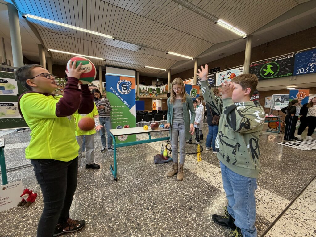 Erstmals nach längerer Zeit fand der Tag der offenen Tür für die Kinder der vierten Klassen der Grundschulen wieder im November statt. Ab 9.30 Uhr strömten die Eltern mit ihren aufgeregten Kindern in die Flure und Klassenräume und nahmen am umfangreichen Schnupperangebot der einzelnen Klassen teil, die an diesem Tag die große Bandbreite des Unterrichts präsentierten. Neben Deutsch, Mathe und Englisch wurden die Profilfächer und Wahlpflichtfächer gezeigt, die zweite Fremdsprache Französisch konnte ausprobiert werden, in den Fachräumen wurde Physik, Chemie und vieles mehr gezeigt. Der Schulsanitätsdienst lud in der Bibliothek an Mitmachstationen ein, in der Sporthalle konnte man am „Le Parcours“ teilnehmen oder Basketball spielen.